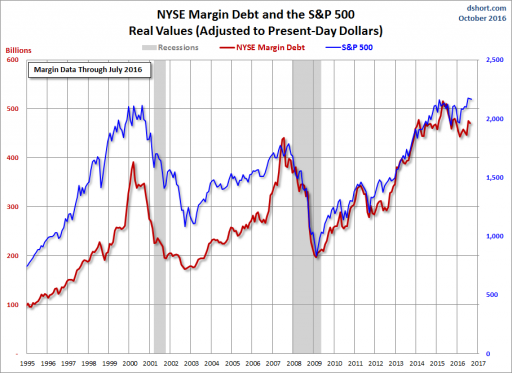 Not just the US government reacted to this stimuli of low or zero interest rates: stock market investors joined the party as well. Never did they use so much credit to invest in stock markets. A recipe for disaster: when the value of stocks drops slightly, many of them will be forced to sell their stocks to pay off margin debt.