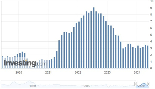 CPI USA in % (YOY) - source: www.investing.com/economic-calendar/cpi-733