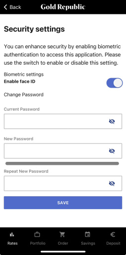 To make logging in easier, Face ID is now available in the GoldRepublic app.