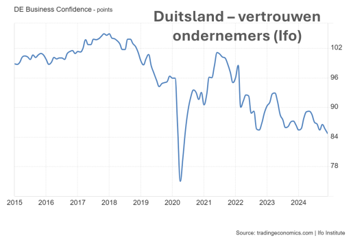 In Europe, business sentiment remains gloomy. In Germany, the key Ifo index, a measure of business confidence, dropped to its lowest level since June 2020 - in the midst of the corona crisis. The fall of the coalition government creates additional uncertainty. New elections are scheduled for February, but it is unclear which parties will form a new government. This political instability threatens to exacerbate economic uncertainty.