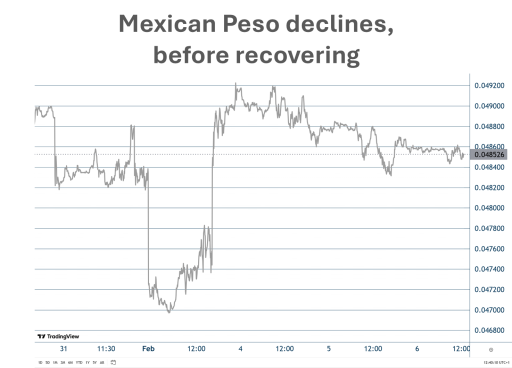 Trump had previously announced that he would introduce import tariffs, but this week they would become effective. Canada, China and Mexico were first up. While this was no surprise, markets still reacted violently when it became clear that the tariffs would take effect on 1 February.