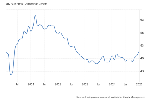 New macro data show that US business confidence rose above 50 in January for the first time since October 2022. This is an important threshold: