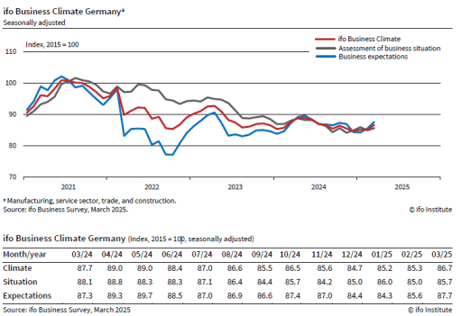 In particular, expectations for the future increased, probably in response to the large investment package recently approved by the German government. This involves investing tens of billions of euros in defence and infrastructure, with which it hopes to also boost the economy.
