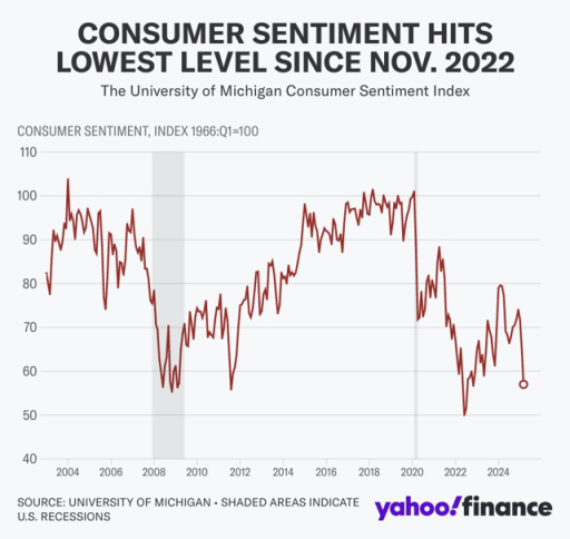 On top of this, consumer confidence dropped significantly. According to figures from the University of Michigan, sentiment reached the lowest level in over two years, while long-term inflation expectations rose to the highest level in 32 years.