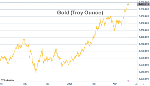 - Gold price pops through $3,000 an ounce, safe haven in uncertain times