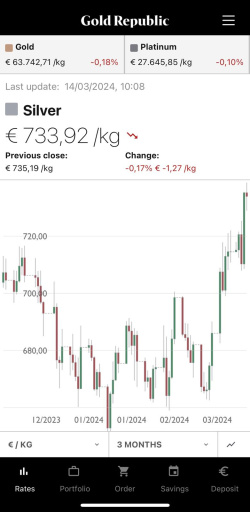The recent financial news has undoubtedly caught your attention, especially the record highs reached by the gold price. If you missed this news, please feel free to read my previous newsletter, where I discuss some of the key factors behind this price increase. But what about the silver price now that gold is reaching unprecedented heights? Since February 27, the price of silver has risen by 10%, from €665 to €735 per kilogram, while the gold price has increased by 6% in the same period. Although gold is in the spotlight, silver is still a considerable distance from its record price in 2011 of €1,050 per kilogram, currently lagging by about 45%.