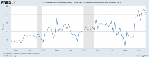 I suspect it is. My thesis is that banks are watching interest rate rise gradually (the net interest rate margin of banks is, by the way, also at a historical low) and they know that whatever is coming will not be pretty. They prefer to be rather safe than sorry. That is why they are limiting extending corporate loans with collateral, or even in some of the cases require additional collateral for existing loans. The banks know something we seem to miss. The banks know something that we are unable to infer from apparent positive macro-economic aggregates. The banks, with their day-to-day observations derived from practice rather than macro-economic aggregates, are beginning to tighten the reins.