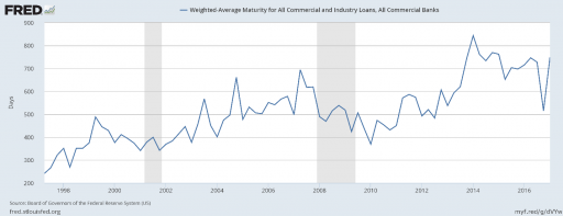 Not only the facts discussed above are extremely revealing. What is also very revealing, is the fact that the average maturity of a corporate loan has increased considerably in recent years. Better yet, the average (weighted) maturity of a corporate loan was never as long as today.