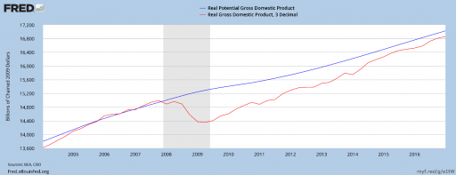 The current estimated output gap. Source: ST LOUIS FED