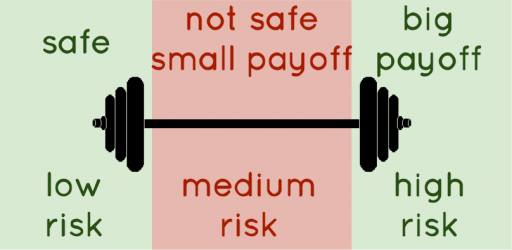 Taleb’s “Barbell Strategy”: take the extremes rather than the middle: invest a large part of your portfolio in extremely safe, robust investments and a smaller part in risky but potentially very profitable investments.