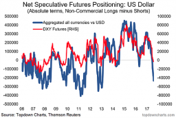 In the above chart we can observe that, in net terms, speculative traders are massively short the dollar. The last time that there was so much downward speculation on the dollar, was in 2013.
