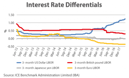 Speaking about market sentiment: for instance, read this Bloomberg article, which says the following: “[The euro], which broke above the psychological $1.20 level for the first time since January 2015 on Tuesday, may see some profit taking in the near term, but banks have no doubts its trajectory remains bullish going forward.” Banks have “no doubts” that the euro will continue to strengthen against the dollar. That “no doubts” are two very dangerous words in the ever-shifting sands of financial markets. When everything agrees that the obvious will happen, normally the exact opposite tends to happen.Interest Rate Differentials