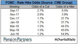 On the other side: the odds of further rate hikes in the US seem to be quite high. Observe in the following table what the odds are, according to the market, that the Fed raises rates in the near future: