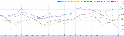 As you can see in the below chart, the recent rise in the EUR/USD rate has been largely due to a weak dollar. After all, the euro performed considerably worse against most other currencies. The Canadian dollar, the Japanese yen and the Swiss franc actually appreciated relative to the euro, while the Australian dollar dropped slightly.