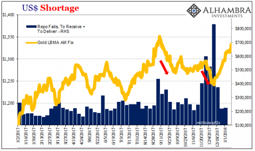 Not only did central banks play an important role, it is also a well-known fact that the interbank market dried up and that the mutual trust between commercial banks dropped to an all-time low. This can be viewed as a consequence of, for instance, “repo failures” (reverse repurchase agreements that due to one of the parties involved failed either by failing to repay the loan or to give back the collateral): Hense,gold.