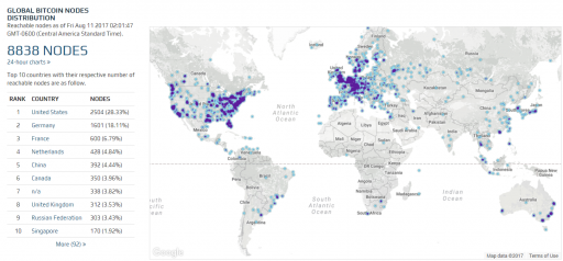But well. There are some other scenarios in which Bitcoin become completely worthless for the pessimists among us. What to think of its dependence on the Internet? Or what about the number of miners (nodes) and the geographical distribution of miners? If all Bitcoin miners are concentrated in one or two regions, then authorities could simply track down these miners and shut them down. Gone blockchain. Gone Bitcoin. And that just happens to be the case.
